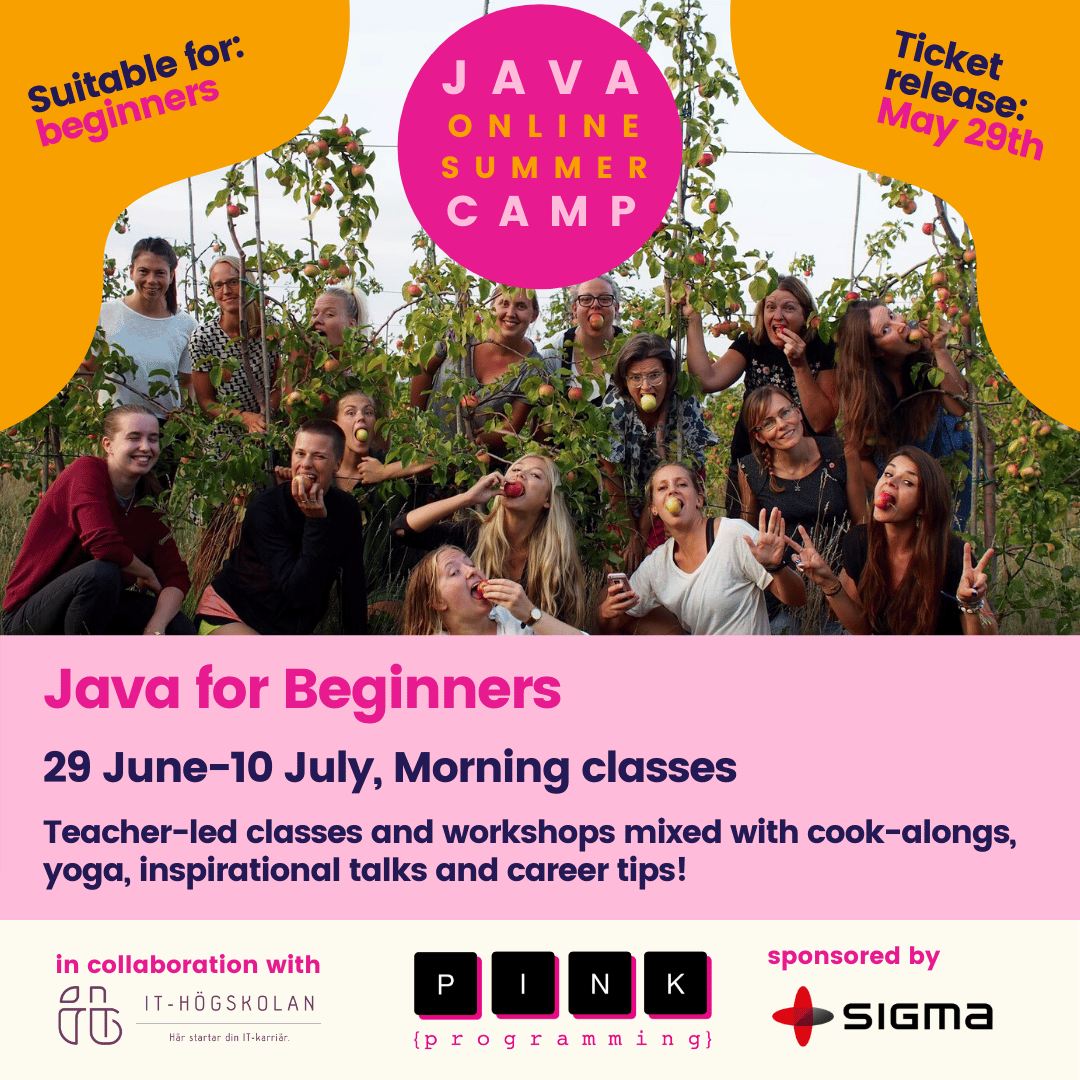 IT-Högskolan verkar tillsammans med IT-branschen för att få fler kvinnor att intressera sig för den fantastiks IT-branschen och det finns en mängd olika organisationer med samma mål. En av dessa är Pink Programming vars mål att få fler kvinnor att programmera. Så vill du som kvinna börja programmera är detta ett ypperligt tillfälle att anmäla sig till någon av nedan sommarkurser och lära dig programmera med Johanna och Charlotte som är två studerande på IT-Högskolans Java och .NET-utvecklare utbildning.