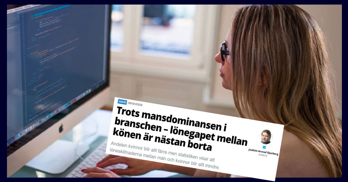 Men sett till lönen ligger branschen förhållandevis bra till ur ett jämställdhetsperspektiv. Än är det dock för tidigt att säga att det är helt jämställt på lönesidan, men utvecklingen går definitivt åt rätt håll. Det visar den statistik från Statistiska centralbyrån som vi tagit fram i samarbete med analysföretaget IDC. (källa ComputerSweden 1/4 2019)