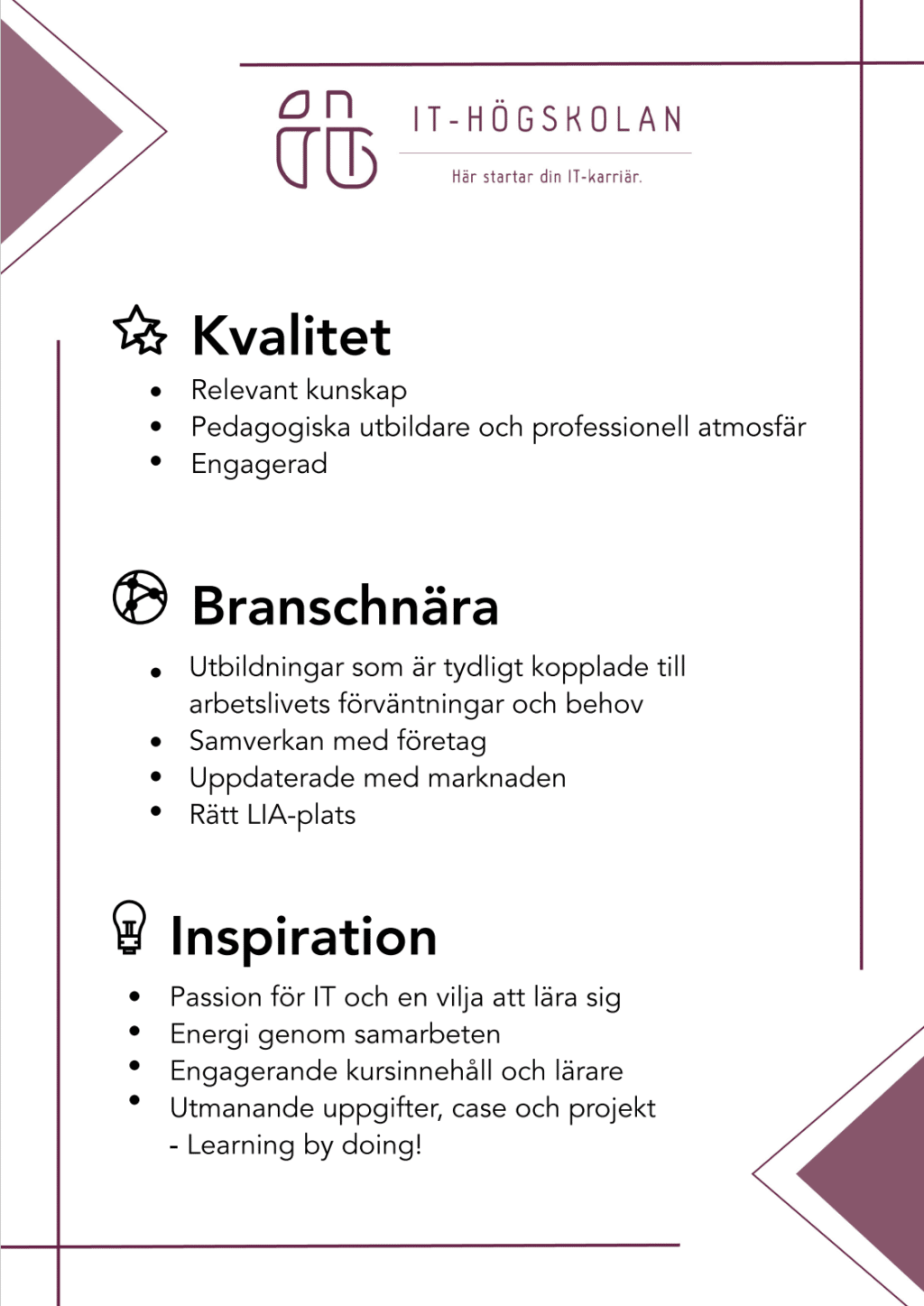 I Stockholm finns IT-Högskolan ett stenkast från tunnelbanestationen Liljeholmen. Våra lokaler ligger på Årstaängsvägen 9 – våning 6. Just nu har vi två utbildningssalar, ett grupprum, ett litet kök med micro, kaffebryggare, sodastream och kylskåp, matsal och en soffhörna med sällskapsspel. Självklart har vi också fritt wifi i hela lokalen.