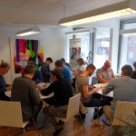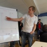 Studenterna är halvvägs i kursen Agil och traditionell-utveckling. Ett högt engagemang och gott samarbete resulterar i mycket bra produkter till produktägarna i dagens Sprint rewiev. De första bilderna är från en av de många workshops som genomfördes under de första två sprintarna.