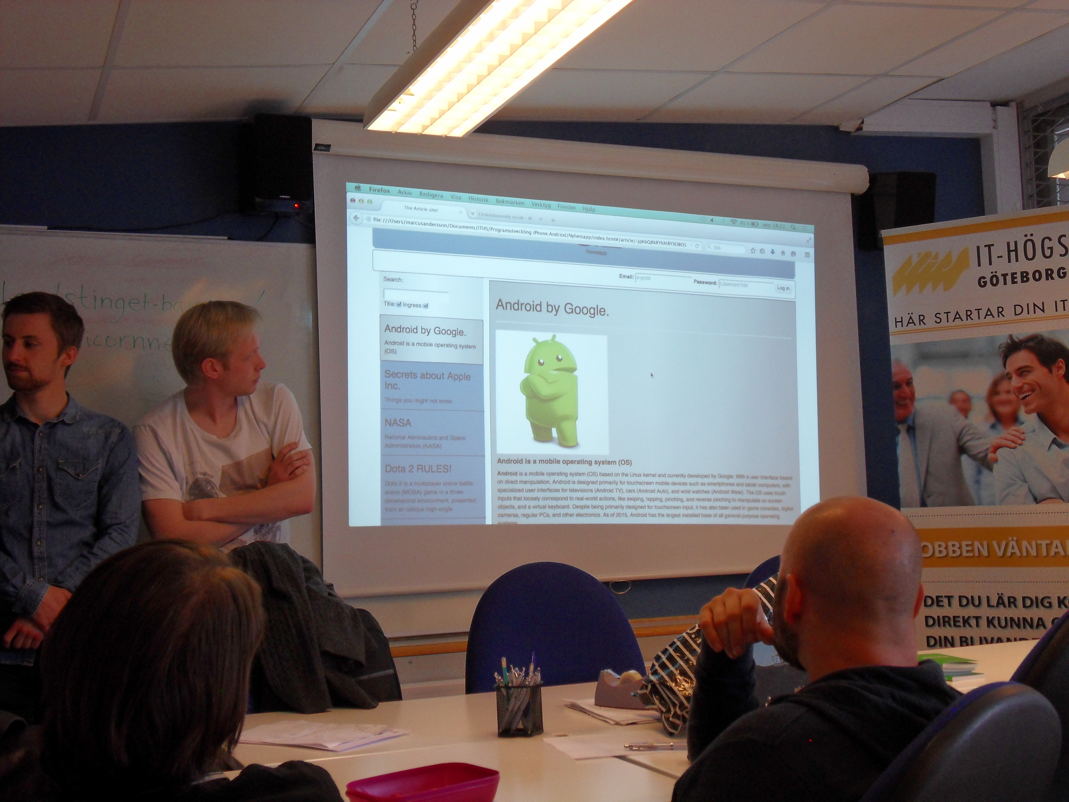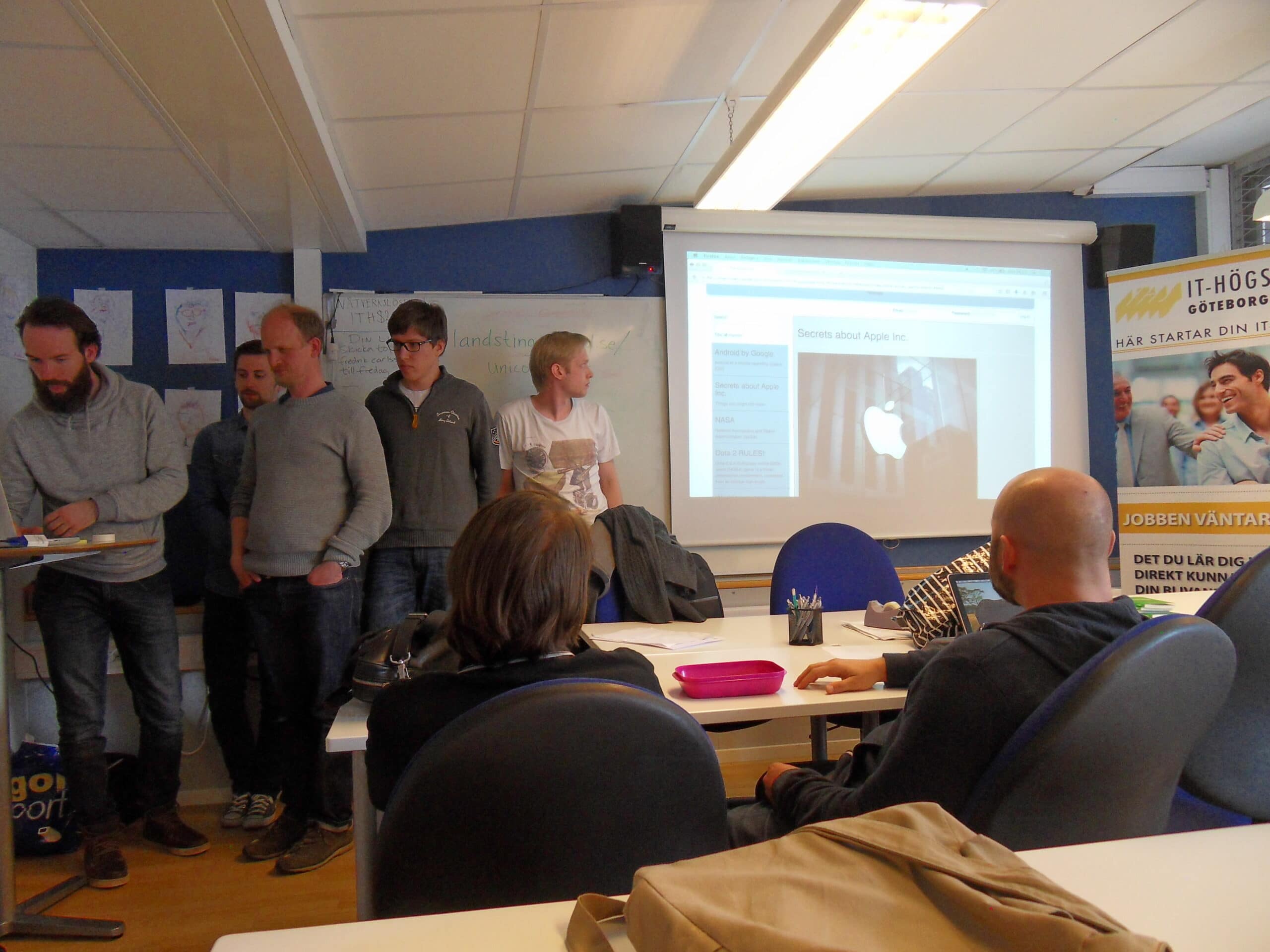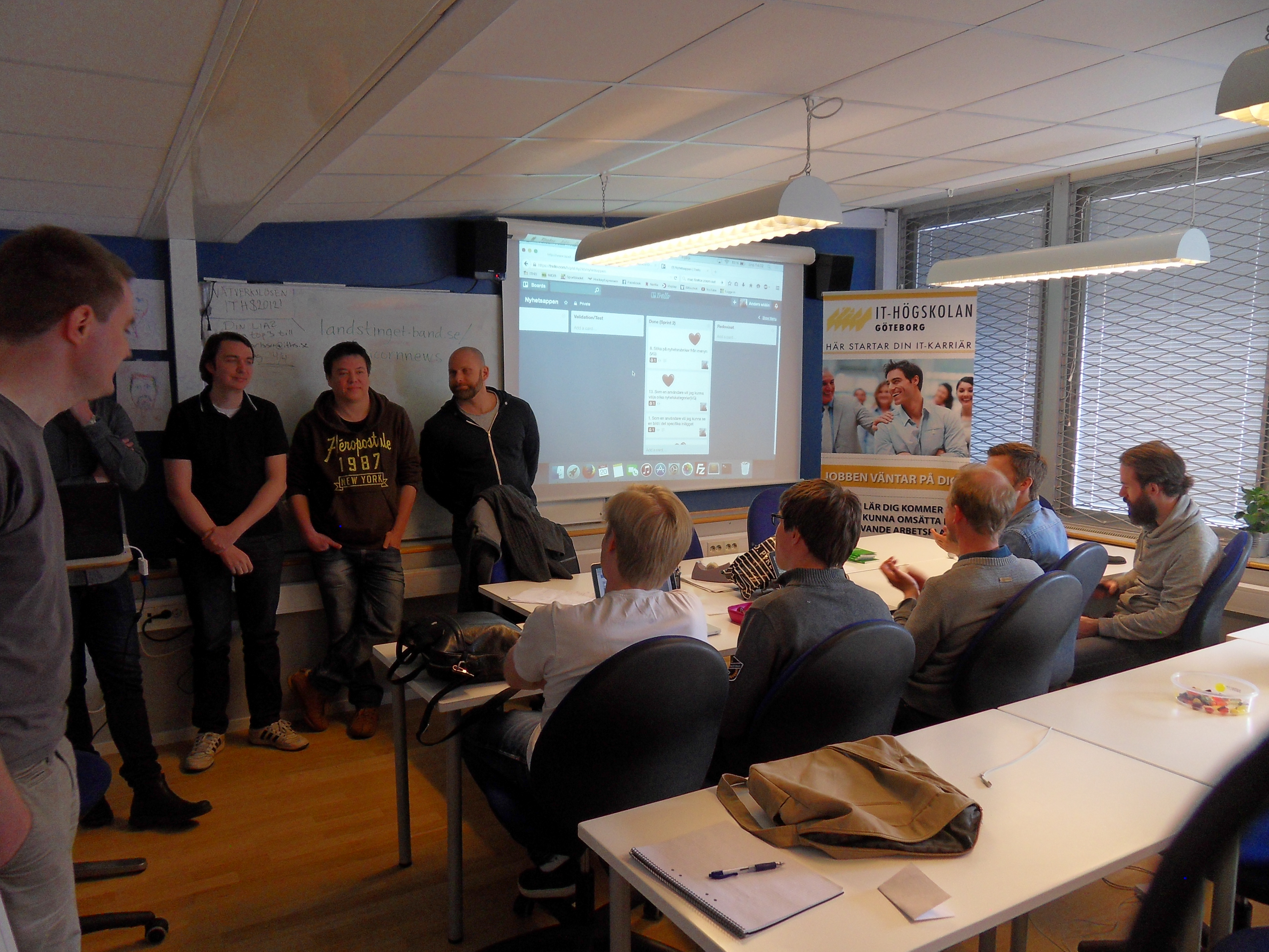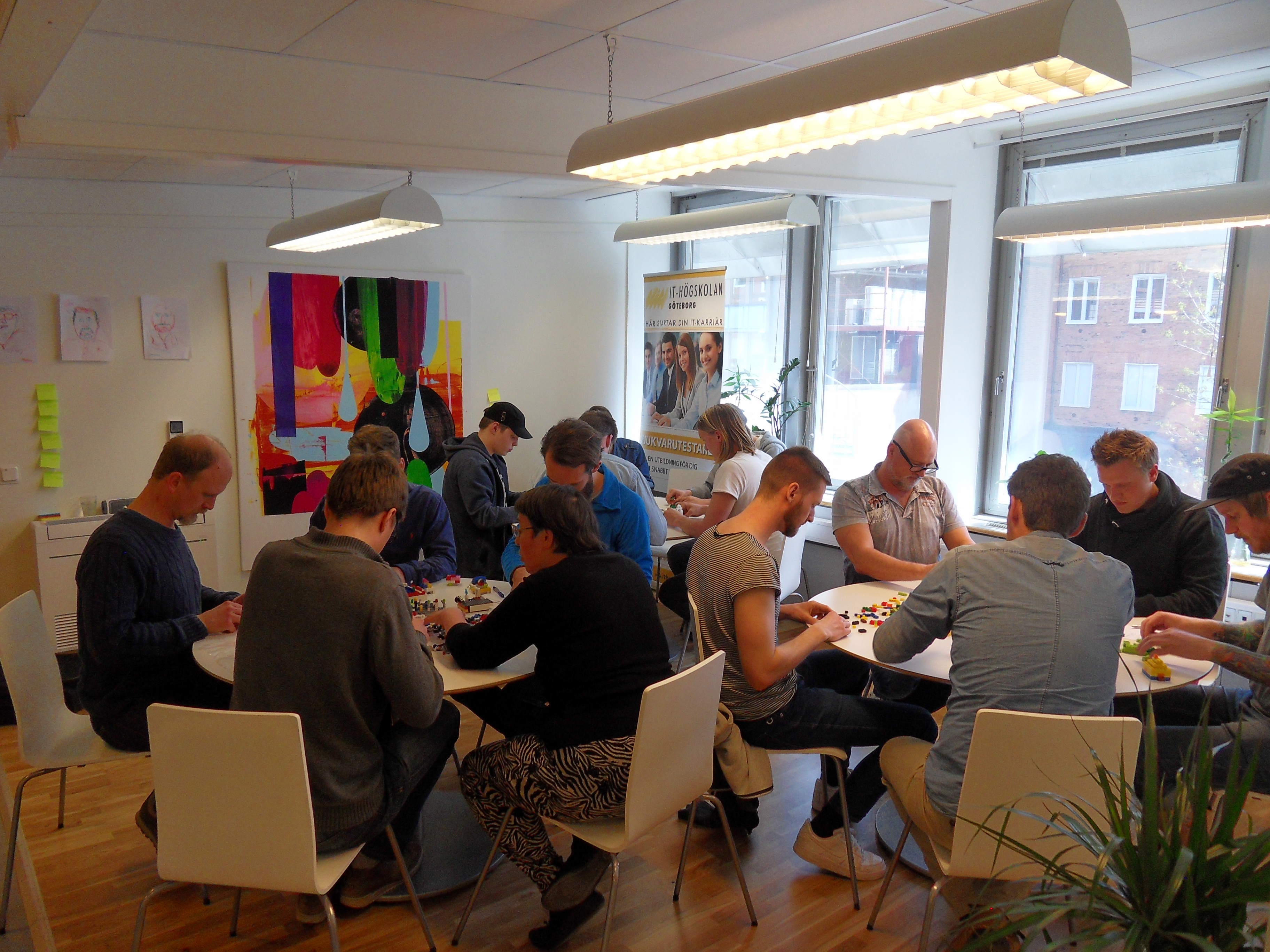 Studenterna är halvvägs i kursen Agil och traditionell-utveckling. Ett högt engagemang och gott samarbete resulterar i mycket bra produkter till produktägarna i dagens Sprint rewiev. De första bilderna är från en av de många workshops som genomfördes under de första två sprintarna.