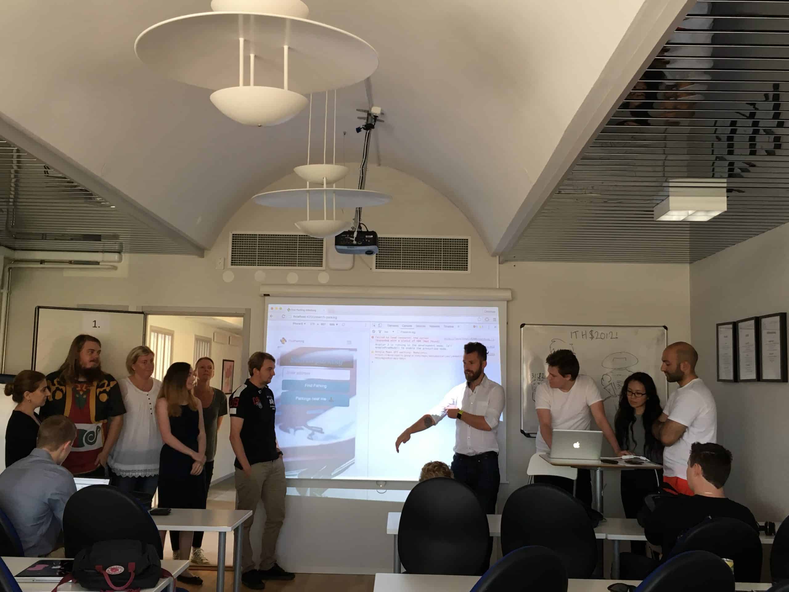 I dag var det slutredovisning i projektet som berörde både Applikationsutvecklare till iPhone och Android och Mjukvarutestare. Under projektet har båda utbildningarna arbetat ihop för att efterlikna en riktig företagsmiljö. Olika case har genomförts för att träna olika moment och även känna på hur det är att arbeta med fler roller i ett team. Arbetsformen var agilt enligt Scrum-metoden och innebär en demo av skapad produkt efter varje sprint. Apparna är producerade med tekniker som Angular 2, Bootstrap, Tipescript, NodeJS, NPM, Firebase och PhoneGap/Cordova. Testningen genomfördes främst med Cucumber med manuella- och automatiseradetester. En spel-, parkerings-, event- och postitapp skapades under detta projekt. Nu väntar välförtjänt sommarlov, bra jobbat under första studie året alla studenter.
